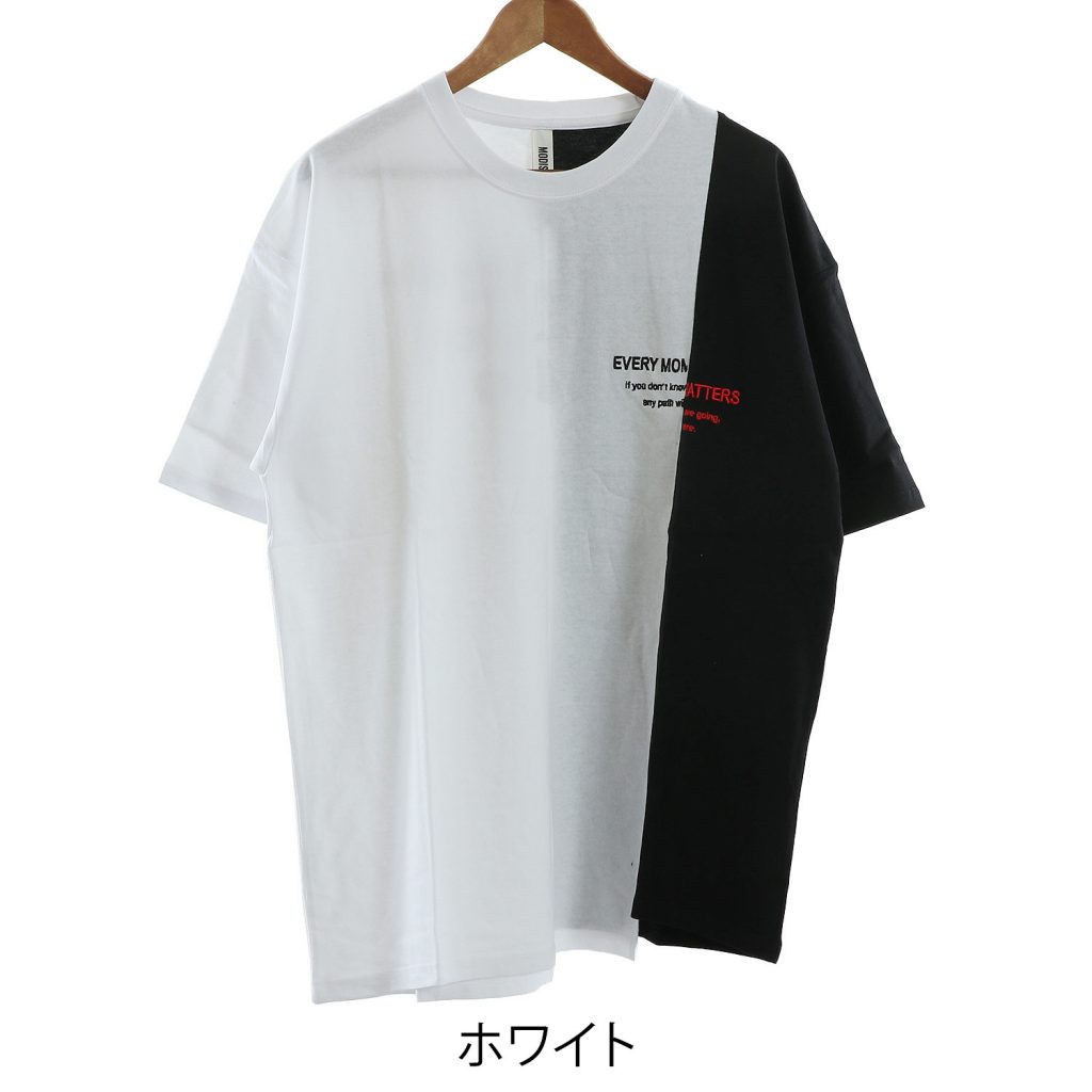 天竺素材の生地を組合わせて配色デザインにした切替Tシャツです。大胆に左右の丈の長さ、切替位置に差を付け、ロゴもずらしてエッジの効いたデザイン性のあるアイテムに仕上げました。刺繍とリフレクタープリントを使用している点もポイントです。ストリート、韓国系コーデにマッチします。