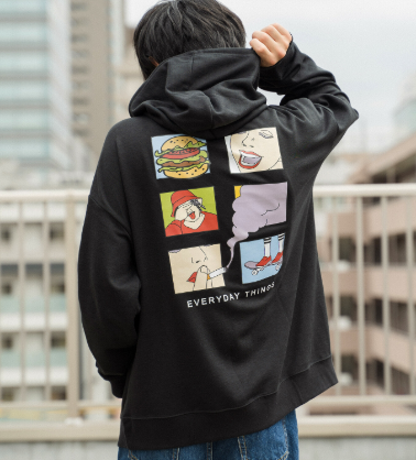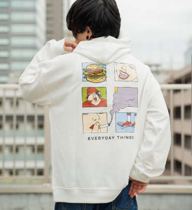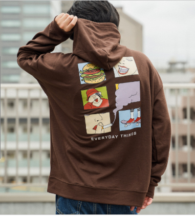 遊び心のあるデザインなので、ジャストサイズよりもゆったりとオーバーサイズぎみのものを選ぶと良さそうです。親子やカップルで柄違い・色違いも楽しめます。